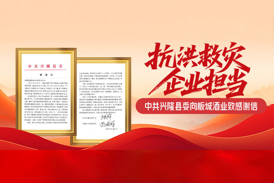 抗洪救災(zāi),企業(yè)擔(dān)當(dāng) | 中共興隆縣委向板城酒業(yè)致感謝信 2025-09-03