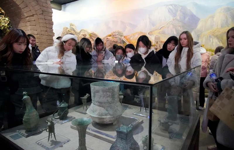 北京語(yǔ)言大學(xué)國(guó)際中文學(xué)院領(lǐng)導(dǎo)和老師,以及來自俄羅斯、塞爾維亞、韓國(guó)、泰國(guó)等國(guó)家和地區(qū)的170多名海外留學(xué)生,先后參觀了酒博物館、地下酒窖和黨建天地,在感受板城燒鍋酒傳承三百余年的老五甑釀造工藝的同時(shí),共同聆聽、探尋板城酒業(yè)背后的深厚歷史與文化底蘊(yùn)。在深入了解企業(yè)脈絡(luò)、品牌文化后,對(duì)冀酒文化的認(rèn)識(shí)更加深刻。