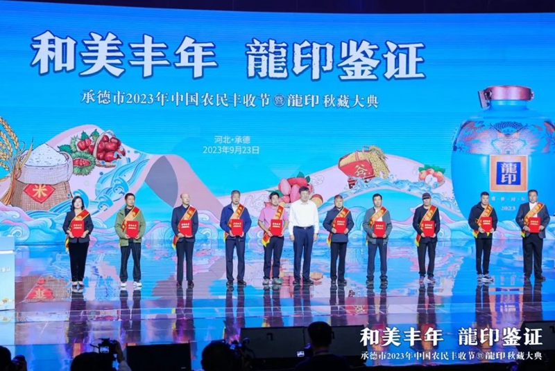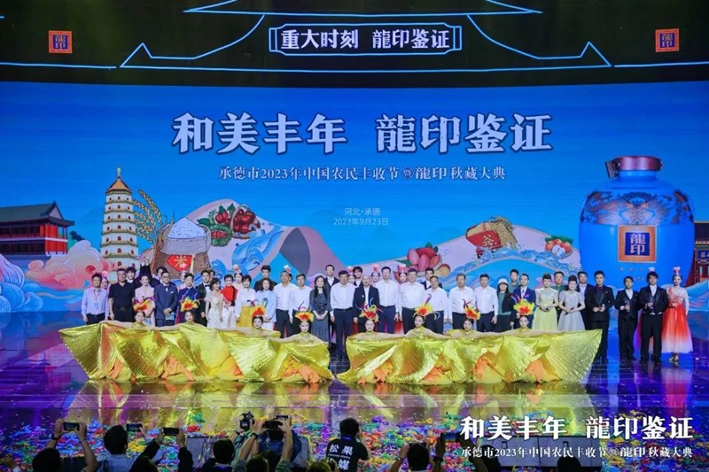 禮贊豐收年,共品龍印酒。9月23日,由承德市人民政府、河北廣播電視臺(tái)(集團(tuán))聯(lián)合主辦;由承德縣人民政府、承德市農(nóng)業(yè)農(nóng)村局、承德市體育局協(xié)辦;由承德縣農(nóng)業(yè)農(nóng)村局、河北板城酒業(yè)、河北廣電廣告有限責(zé)任公司承辦的承德市2023年中國(guó)農(nóng)民豐收節(jié)暨龍印秋藏大典在承德市奧體中心圓滿落下帷幕。板城酒業(yè)駕起卓越追求的時(shí)代巨輪,乘歷史文脈之槳,掌匠心傳承之舵,揚(yáng)帆起航,再次譜寫龍印“秋藏大典”品牌文化IP的時(shí)代篇章。