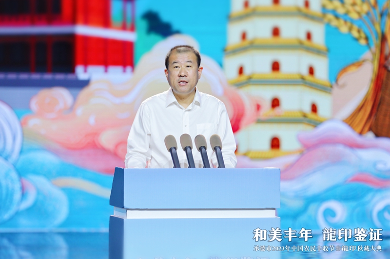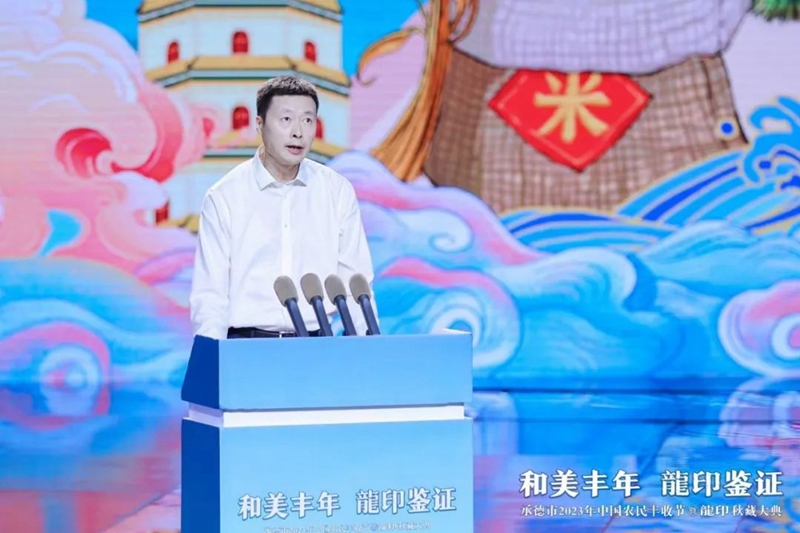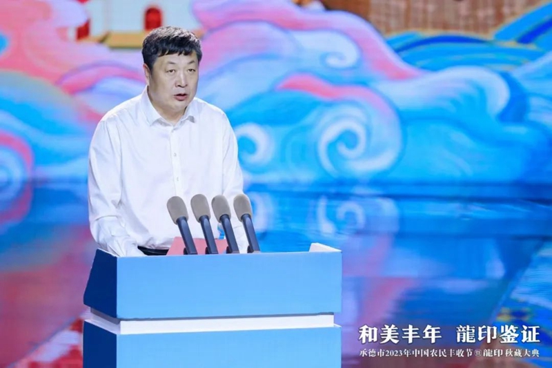 整場(chǎng)慶典以記錄承德人民美好生活、美景美食、農(nóng)業(yè)碩果的視頻《承德十二時(shí)辰》拉開帷幕。承德市人民政府副市長(zhǎng)崔萬峰率先上臺(tái)致辭,并對(duì)承德市2023年中國(guó)農(nóng)民豐收節(jié)暨龍印秋藏大典的召開表示熱烈祝賀。