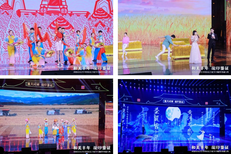 活動(dòng)中,情景劇《歷史上的1717》通過舞臺(tái)技術(shù)實(shí)現(xiàn)康熙皇帝與趙弘燮跨時(shí)空對(duì)話,再現(xiàn)了“金木水火土,板城燒鍋酒”的傳奇故事,在無數(shù)板城人心中蕩起層層漣漪;《豐收中國(guó)》、《風(fēng)吹麥浪》、《豐收進(jìn)行曲》等歌曲唱盡了農(nóng)民的喜悅,以及他們砥礪奮進(jìn)的決心。