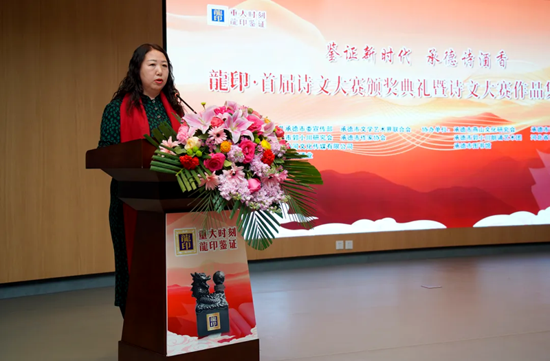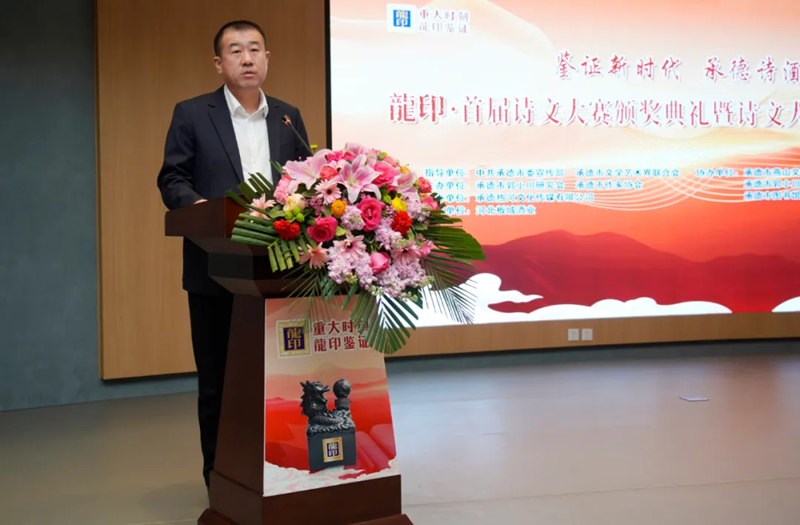 承德市郭小川研究會(huì)會(huì)長步九江發(fā)表致辭,“鑒證新時(shí)代 承德詩酒香——龍印·首屆詩文大賽”這場活動(dòng)參與人員之多,高手云集之密,采訪挖掘之深,作品質(zhì)量之高,在承德文學(xué)史上尚屬首次。