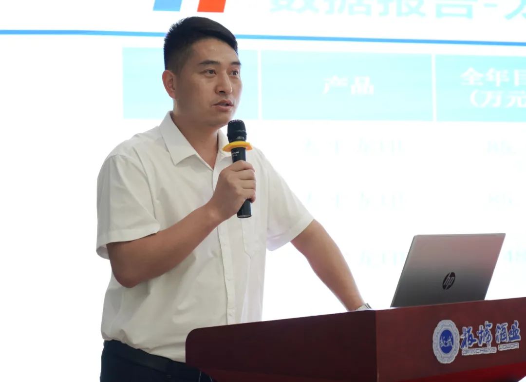 板城酒業(yè)營(yíng)銷管理部經(jīng)理?xiàng)钶x匯報(bào)上半年度的相關(guān)工作,對(duì)戰(zhàn)略目標(biāo)落地的關(guān)鍵指標(biāo)、深度分銷模式落地的數(shù)量與質(zhì)量等工作開展進(jìn)行有效追蹤、檢核與分析。
