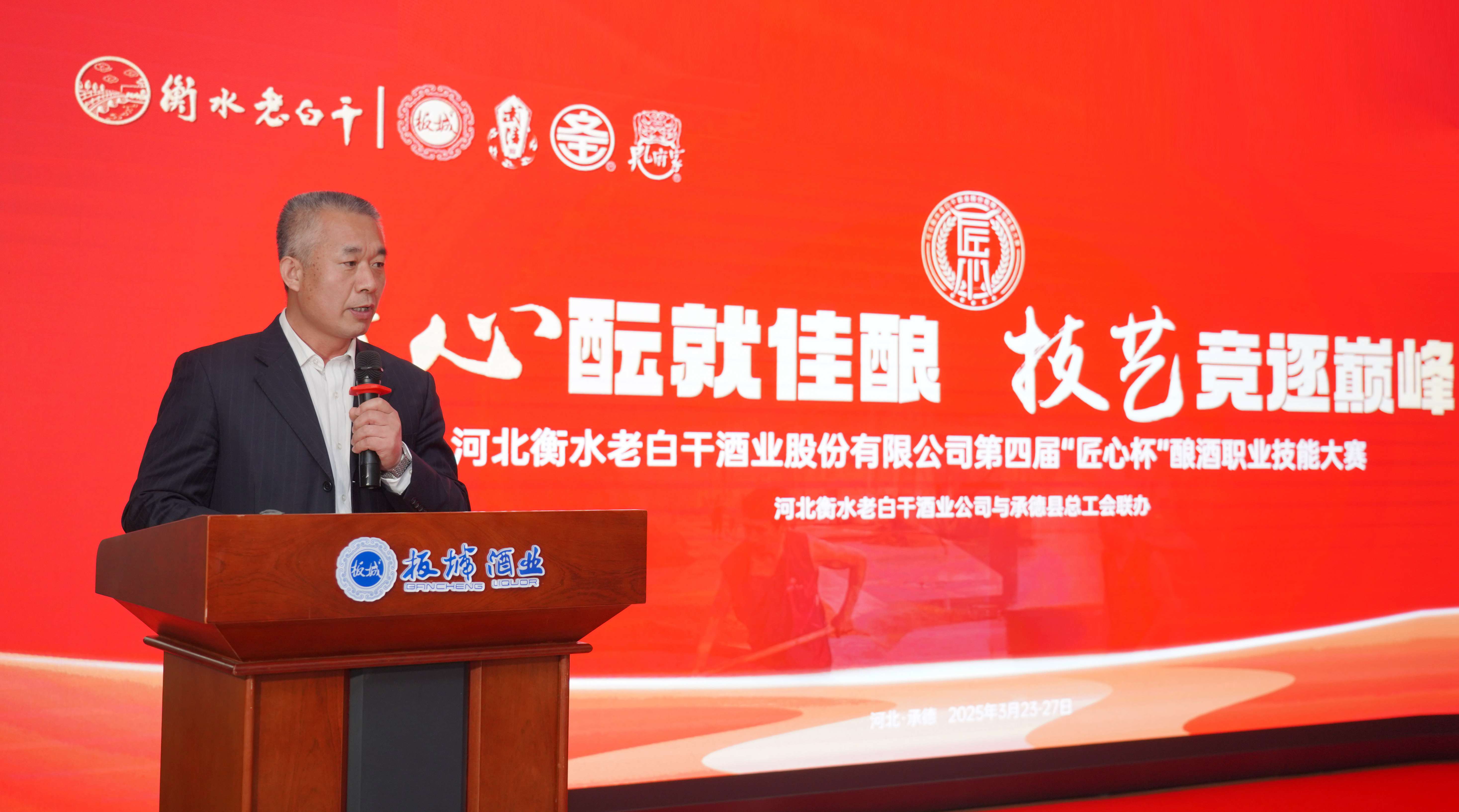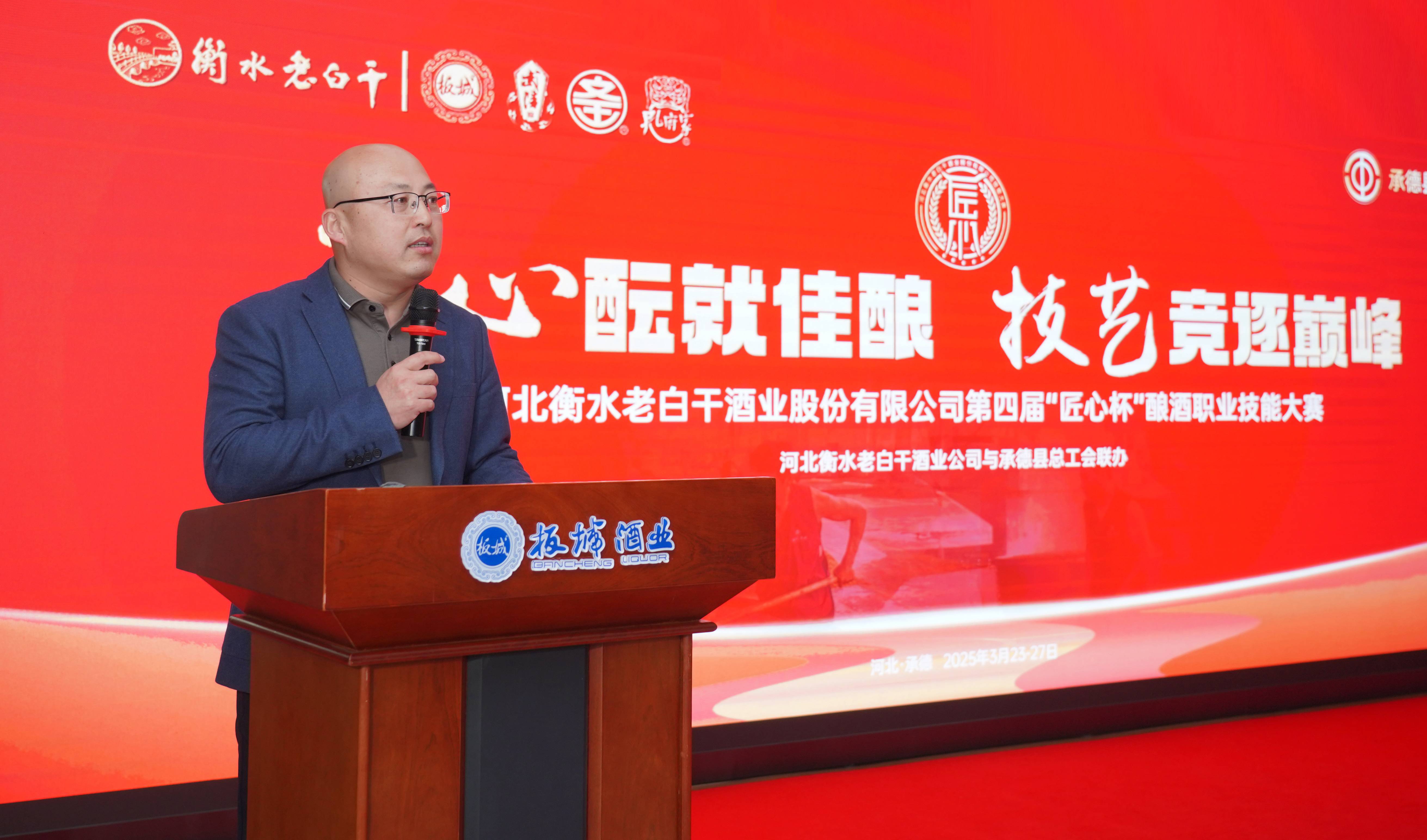 承德縣總工會(huì)黨組書記、常務(wù)副主席溫明忠在活動(dòng)中致辭,他講到:“此次‘匠心杯’釀酒職業(yè)技能大賽,是老白干酒業(yè)集團(tuán)為旗下五家酒業(yè)公司的‘技能大師’們搭建的切磋技藝、展示風(fēng)采、傳承精神的廣闊舞臺。每一位參賽選手都是各自企業(yè)的佼佼者,他們帶來的不僅是精湛的釀酒技藝,更是對釀酒事業(yè)的無限熱愛與執(zhí)著追求。通過這場比賽,大家相互學(xué)習(xí)、相互交流,在競爭中進(jìn)步,在切磋中成長,必將推動(dòng)酒行業(yè)整體水平的大幅提升。希望以此次大賽為新的起點(diǎn),進(jìn)一步弘揚(yáng)工匠精神,加強(qiáng)技術(shù)創(chuàng)新與研發(fā),為消費(fèi)者釀造出更高品質(zhì)的美酒,為中國酒業(yè)的發(fā)展注入新的活力。”