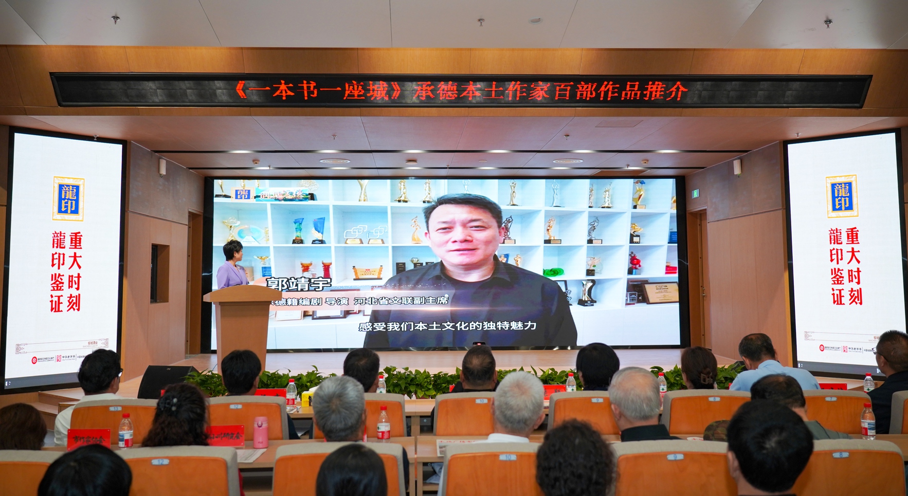 承德籍著名導(dǎo)演、編劇郭靖宇以視頻形式深情回憶家鄉(xiāng)文化對(duì)自己創(chuàng)作的影響,承德籍著名編劇楊勇則呼吁:“用文字記錄承德的山河故事,讓每一本書都成為城市的名片。”