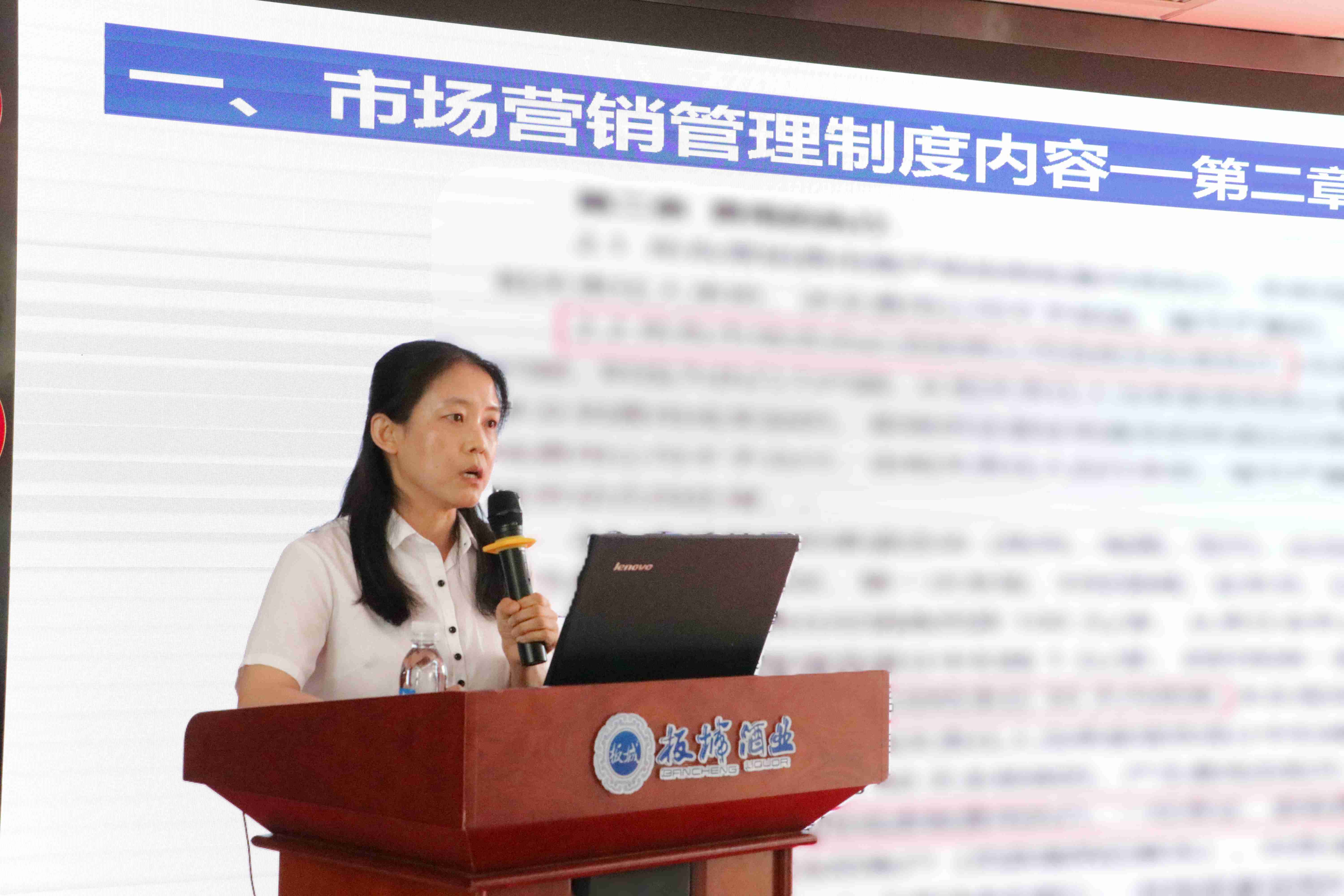 板城酒業(yè)營(yíng)銷管理部主管金百靈講解公司規(guī)章制度,督促大家共同營(yíng)造風(fēng)清氣正的工作氛圍,提升公司資源的投入效能,建立良性有序的市場(chǎng)秩序,堅(jiān)決保障公司戰(zhàn)略有效落地。
